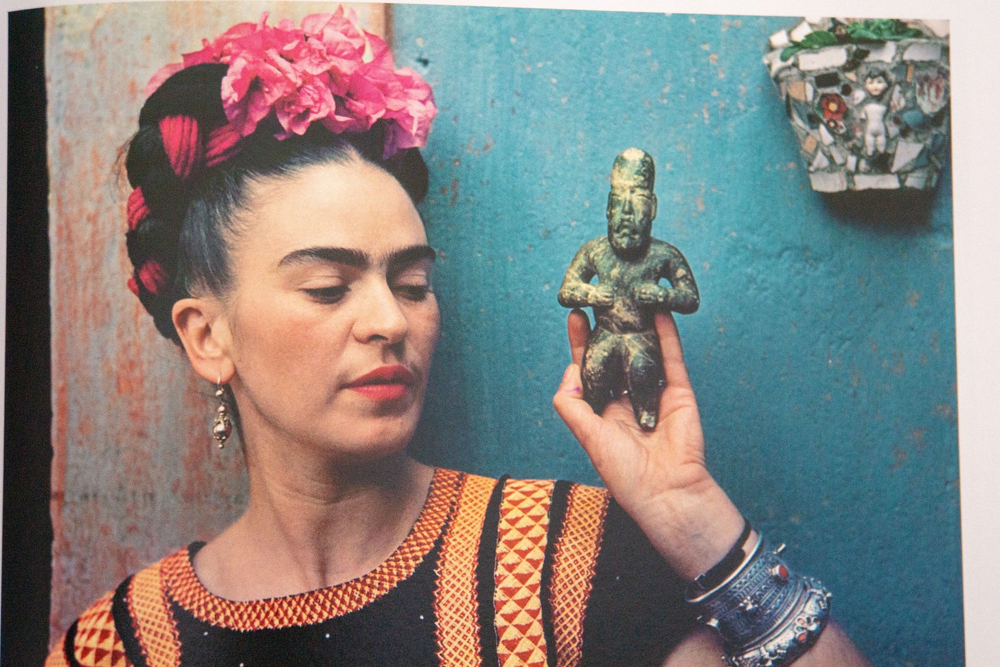When I spotted a bottle of Guerlain Shalimar among Frida Kahlo’s clothes in Casa Azul, I understood more about both icons. Frida said that Shalimar covered up her “dog-like smell,” but her sarcasm concealed a deeper truth. This extravagant perfume echoed the way she assembled herself every morning as though she were painting a self-portrait: her embroidered huipiles, her heavy jewelry, her skirts brushing the floor like petals, her scarlet lips, her oils and unguents and scents.